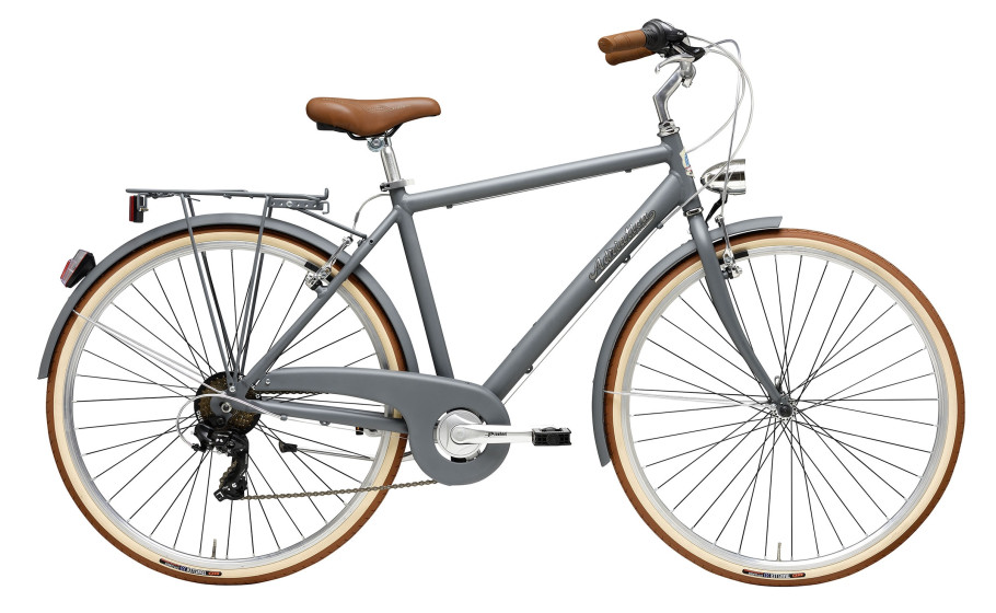 Bici classica da uomo con cambio, con telaio in alluminio, ruote 28 e accessori in alluminio. Adriatica, storica azienda nata a Pesaro nel 1946 che continua a garantire qualità, manodopera esperta al fine di creare veri gioielli di design.