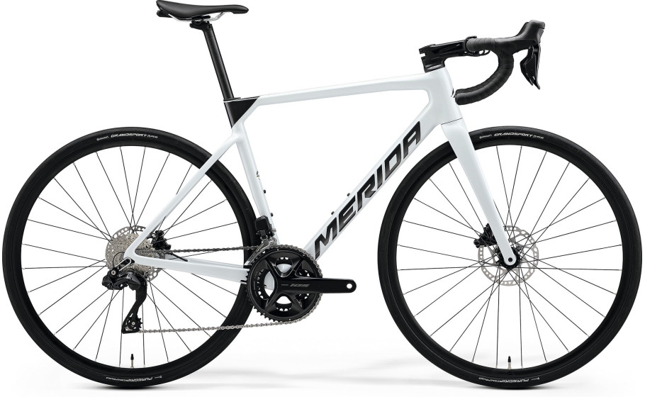 Bici da corsa con telaio in carbonio super leggero, forcella in carbonio, cambio Shimano 105 elettronico 12 velocità, freni a disco idraulici per chi cerca leggerezza, aerodinamicità e confortevolezza. Merida, marchio globale nella fabbricazione di biciclette con 5 fabbriche e secondo produttore al mondo di telai.