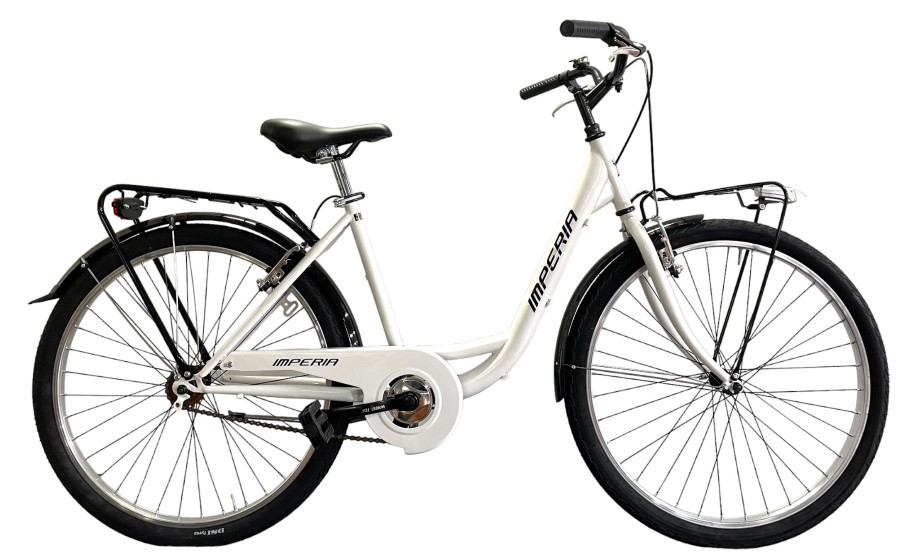 Bici da città con telaio in acciaio ad accesso facilitato e ruote 26 ideale per la città. Imperia, marchio parmigiano fondato nel 1974 da Bruno Scarica, tutt'ora commercializzato in esclusiva da Biciclette Scarica.