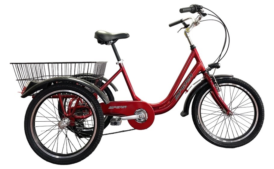Bici con tre ruote con telaio in alluminio, cambio Shimano e cesto posteriore ideale per lavoro o per fare la spesa. Imperia, marchio parmigiano fondato nel 1974 da Bruno Scarica, tutt'ora commercializzato in esclusiva da Biciclette Scarica.