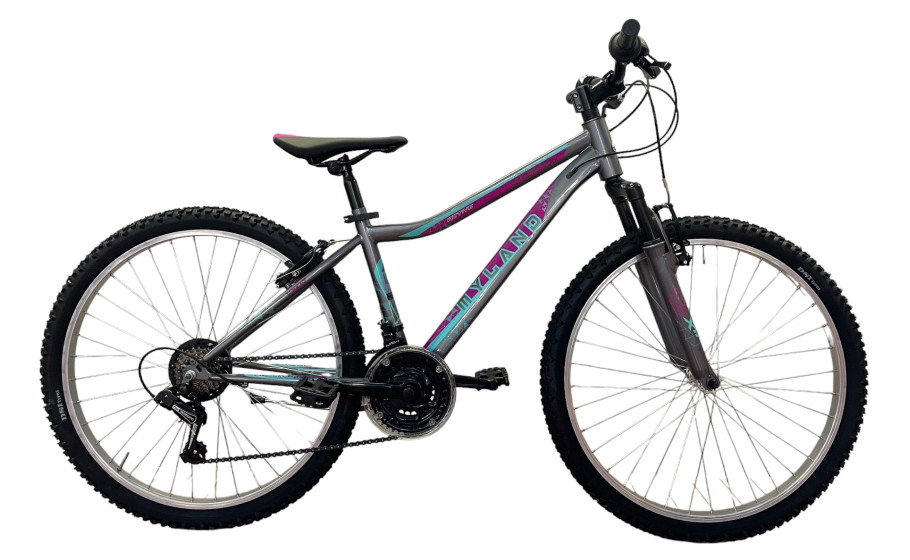Mountain bike da ragazza con ruote 26, forcella ammortizzata, cambio Shimano 18V rifinita nei minimi particolari. Myland, marchio di bici di ogni tipologia del gruppo Rms con oltre cinquanta anni di esperienza nel mondo delle due ruote.