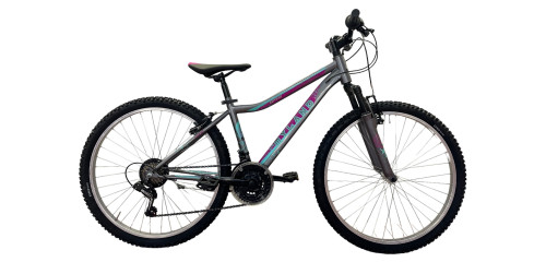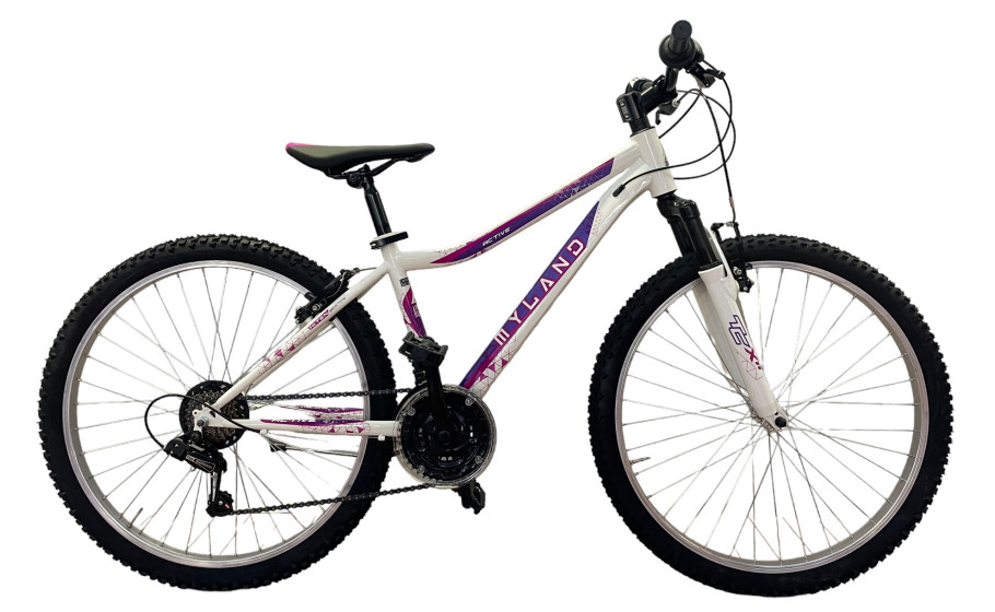 Mountain bike da ragazza con ruote 26, forcella ammortizzata, cambio Shimano 18V rifinita nei minimi particolari. Myland, marchio di bici di ogni tipologia del gruppo Rms con oltre cinquanta anni di esperienza nel mondo delle due ruote.